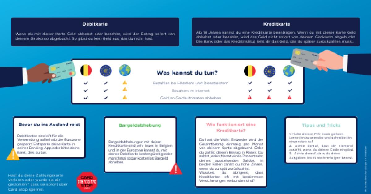 Poster Poster Debitkarte oder Kreditkarte? Dernière mise à jour 03.03.2026 2 Downloads Entdecken Sie die verschiedenen Zahlungskarten. Plus d'information Type d'enseignement Enseignement technique de transition Enseignement professionnel Enseignement technique de qualification Enseignement général Degré 1er degré du secondaire 2ème degré du secondaire 3ème degré du secondaire Thème Moyens de paiement Moins d’information